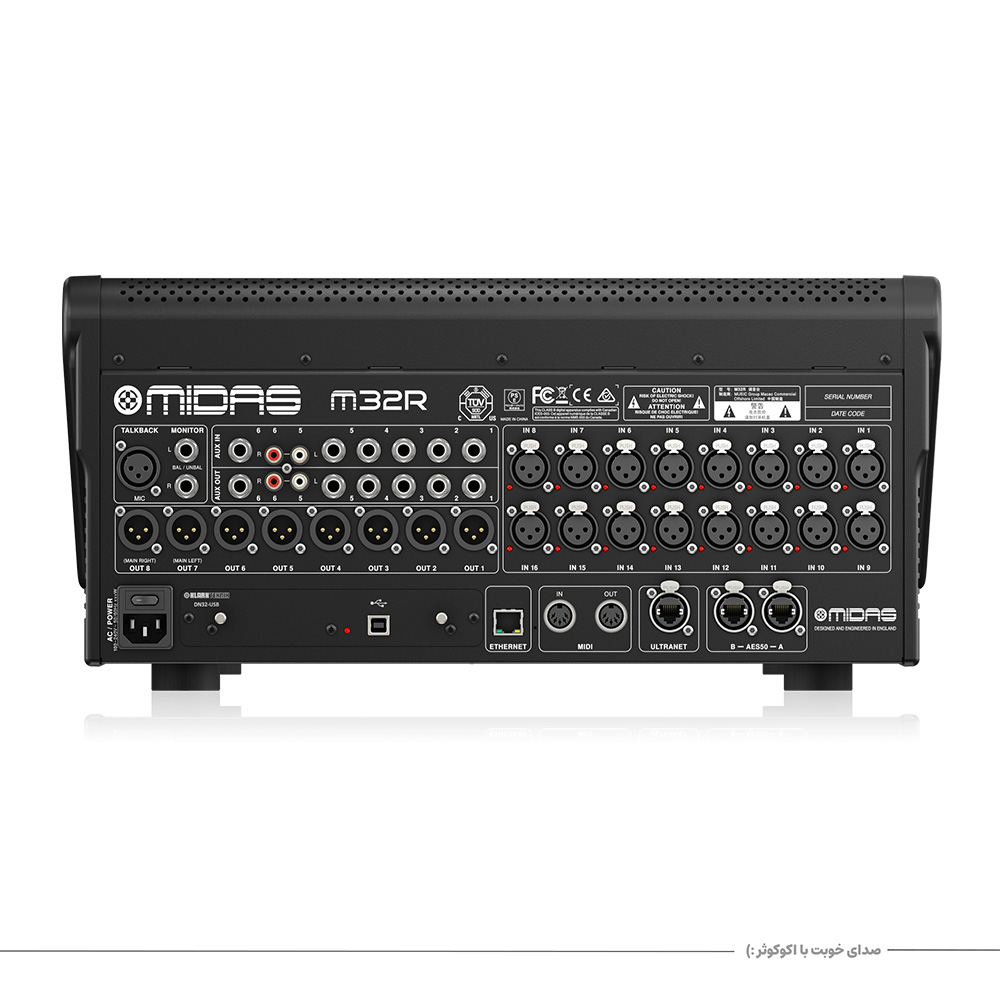 میکسر صدای MIDAS M32R LIVE ، کنسول دیجیتال لایو با ۴۰ کانال ورودی ، 16 پری آمپ میکروفون ، ۲۵ خط میکس باس می باشد. از قابلیت های ویژه ی این محصول می توان به شبکه بندی با پرتکل AES50 و قابلیت افزایش ۹۶ عددی ورودی و ۹۶ عددی خروجی اشاره کرد . این میکسر دیجیتال دارای ۲۵ فیدر ۱۰۰ میلی متری موتورایز ، صفحه نمایش ۱۵ اینچی ، کنترلرهای تمام تاچ ، ۸ موتور پردازش افکت استریو می باشد.